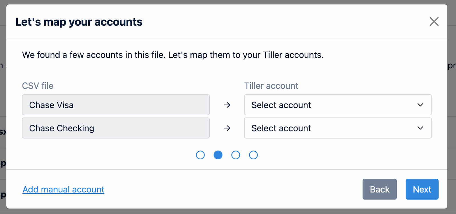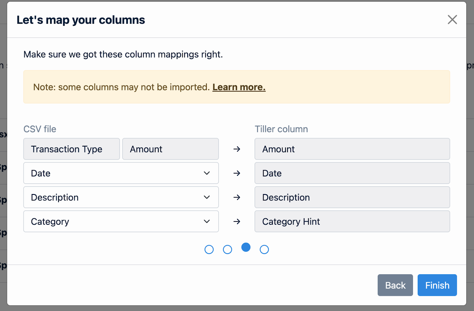 Our CSV import tool allows you to import your bank transactions directly into accounts managed by Tiller and right into your spreadsheet. It’s handy if you prefer to track manually or need to add more transaction history.