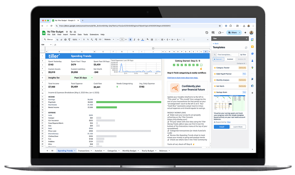 Automated transaction tools like Tiller use secure connections to pull data directly from your financial institutions. These are the same encrypted, read-only connections that banks’ own mobile apps use—monitored and regulated for security.